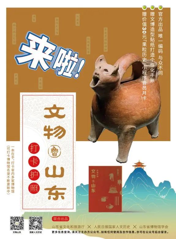 为助力文物事业发展,提升更多年轻观众对文物的关注,山东省文化和旅游厅、人民日报《国家人文历史》杂志社与山东省博物馆学会共同发起“文物山东”打卡护照项目,整合山东全省博物馆资源,让观众在“畅游”和“研学”的过程中,悠游于历史和文化的长河,寻找时光留下的印记,倾听文物讲述过去的故事。