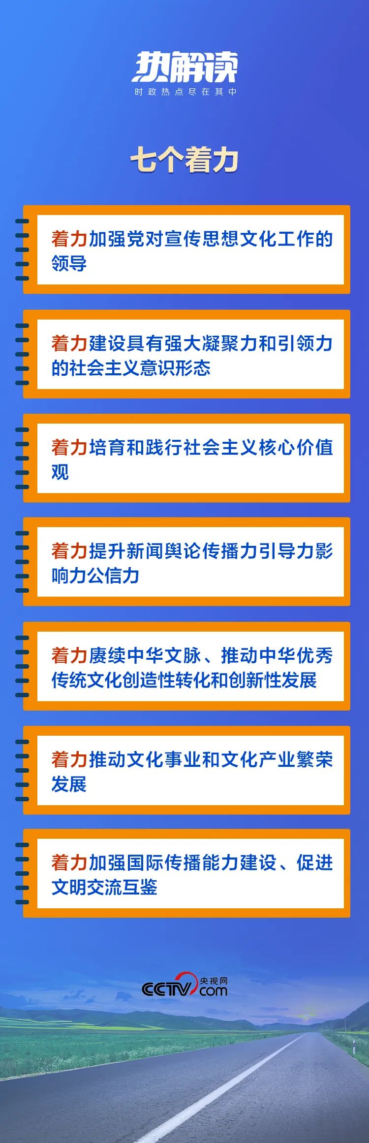 在这次对宣传思想文化工作的重要指示中,总书记提出了“七个着力”的重要要求,为新时代文化建设明确了路线图和任务书。