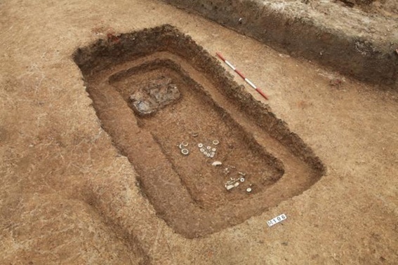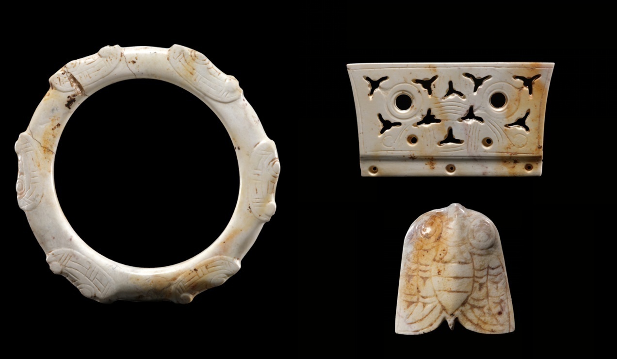 良渚文化一般分为早、中、晚三期。良渚文化早期阶段,通过对北村、南王庙等遗址调查发掘,以及瑶山外围等聚落结构新线索的分析,建立了前古城时代良渚遗址群聚落分布的新认识。北村遗址位于莫角山以南3公里,面积8万平方米,分南北两部分,主体堆积属良渚文化早期偏早阶段。北村南地点可分为高、低两级台地,两级台地之间存在明显的陡坡,坡底分布有围沟,推测为有意将高台地的高等级居住区、墓葬与低台地的平民居住区、墓葬相隔离,显示出聚落内部明显的社会分化现象。女性墓葬M106出土随葬品70件,包括玉蝉、龙首镯、镂孔兽面纹冠状器、璜串等重要玉器,是同时期的一座高等级墓葬。