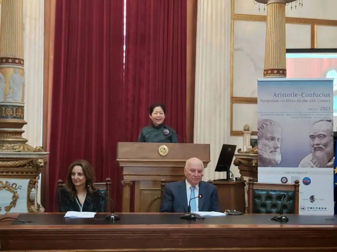7月3日,由联合国可持续发展解决方案网络(SDSN)、中国孔子基金会、雅典科学院、亚里士多德大学亚里士多德跨学科研究中心联合主办的孔子—亚里士多德21世纪伦理学术论坛在希腊雅典开幕。汇集来自中国清华大学、北京大学、中国人民大学、武汉大学、香港大学、山东大学、华东师范大学,希腊雅典大学、雅典科学院,美国芝加哥大学、哥伦比亚大学,以及新加坡、柬埔寨等国家和地区的150多位顶尖专家学者。以“借鉴人类古老智慧,破解当代发展困境”为主题,聚焦研讨“中国古典哲学和希腊古典哲学能为当今世界做出什么贡献”。