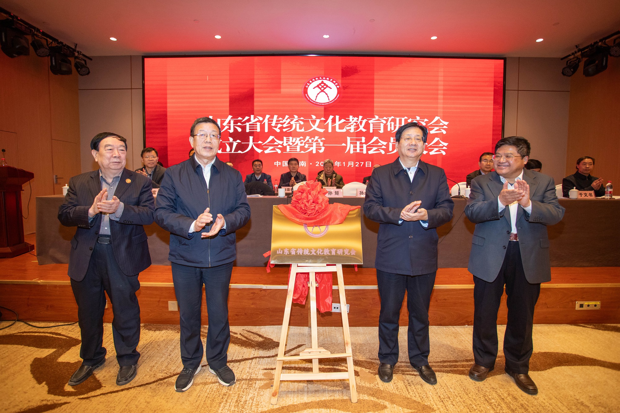 会上,孙继业、张孟强等领导为山东省传统文化教育研究会成立揭牌。主席台领导还为会长单位山东大学和副会长单位山东社会科学院、济南大学等发起单位授牌。
