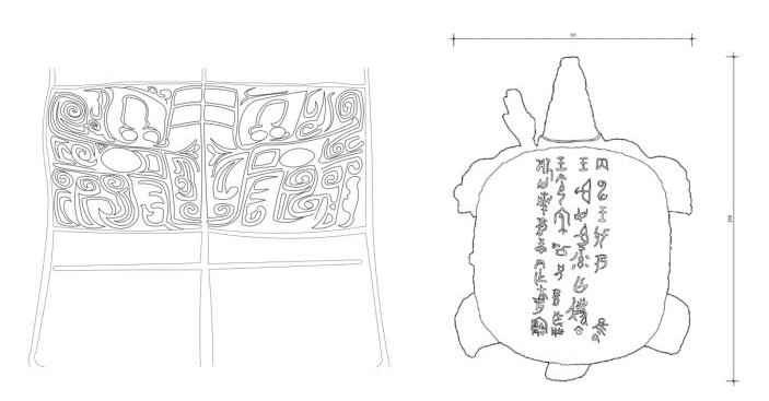 用数字化手段无损提取青铜器文物的关键信息,图左为提取的纹样线图,图右为从作册般黿提取的信息。中国国家博物馆供图