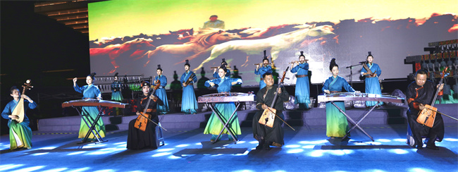 孔子博物馆箫韶乐团与杭锦旗乌兰牧骑器乐合奏《特斯河之赞》。