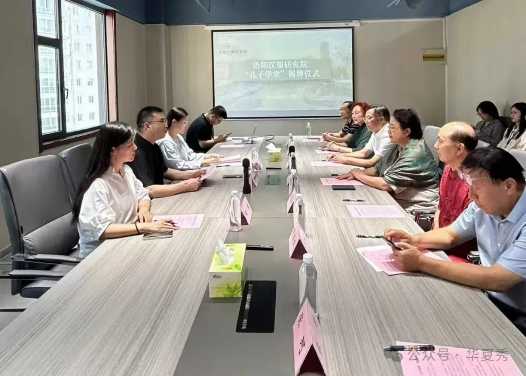 2024年8月15日,洛阳市老城区孔子学堂(第3398号)在洛阳汉服研究院率先揭牌,标志着中华优秀传统文化之服饰文化的传承与发展迈出了重要一步。尼山世界儒学中心(中国孔子基金会秘书处)党委委员、中国孔子基金会副秘书长、孔子学堂推进委员会主任周静,湖南省社会主义学院、湖南省中华文化学院原副院长、原巡视员,中国孔子基金会孔子学堂推进委员会副主任刘孝听,山东省委政策研究室原副主任、一级巡视员王玉河,山东省委党校哲学教研部原主任、尼山世界儒学中心讲师团特聘专家张友谊参加活动。