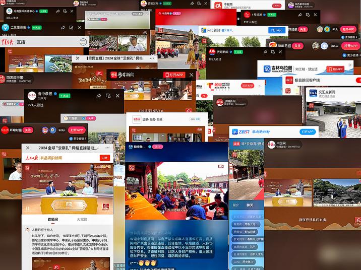 作为2024中国国际孔子文化节的重要内容之一,2024全球“云祭孔”网络直播活动以“仁礼天下,和合大同”为主题,历时3个半小时,全景式展示了山东曲阜孔庙、浙江衢州孔庙、北京孔庙和国子监博物馆、贵州贵阳孔学堂、吉林长春文庙海内外60余所孔庙、文庙、书院、孔子学堂及众多文化机构的祭孔盛况。人民日报客户端、新华社、央视网、央视频、环球时报、中国网、大众日报、新华日报、闪电新闻、海报新闻、新黄河客户端香港商报、澳门日报、埃及《中国周报》、中华微视Twitter账号Facebook账号、中东头条Facebook账号100余家媒体平台参与现场直播,吸引了全球3200余万人次在线观看,共同见证世界各地祭孔活动的庄重肃穆,领略中华礼乐文化的深厚底蕴,感受中华优秀传统文化的时代魅力。