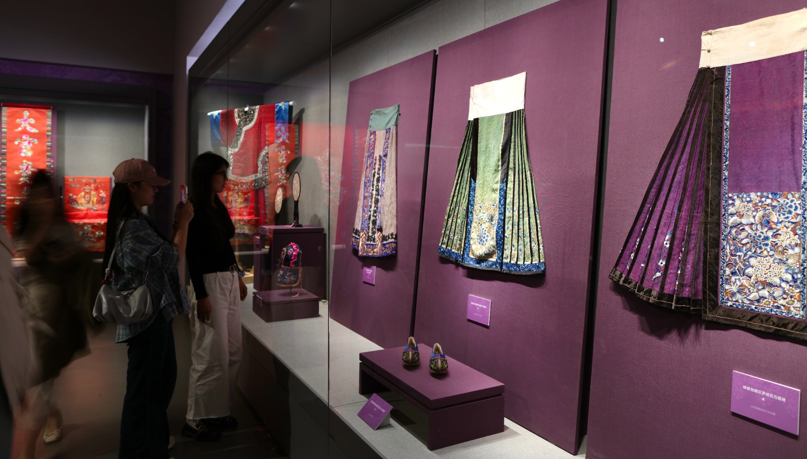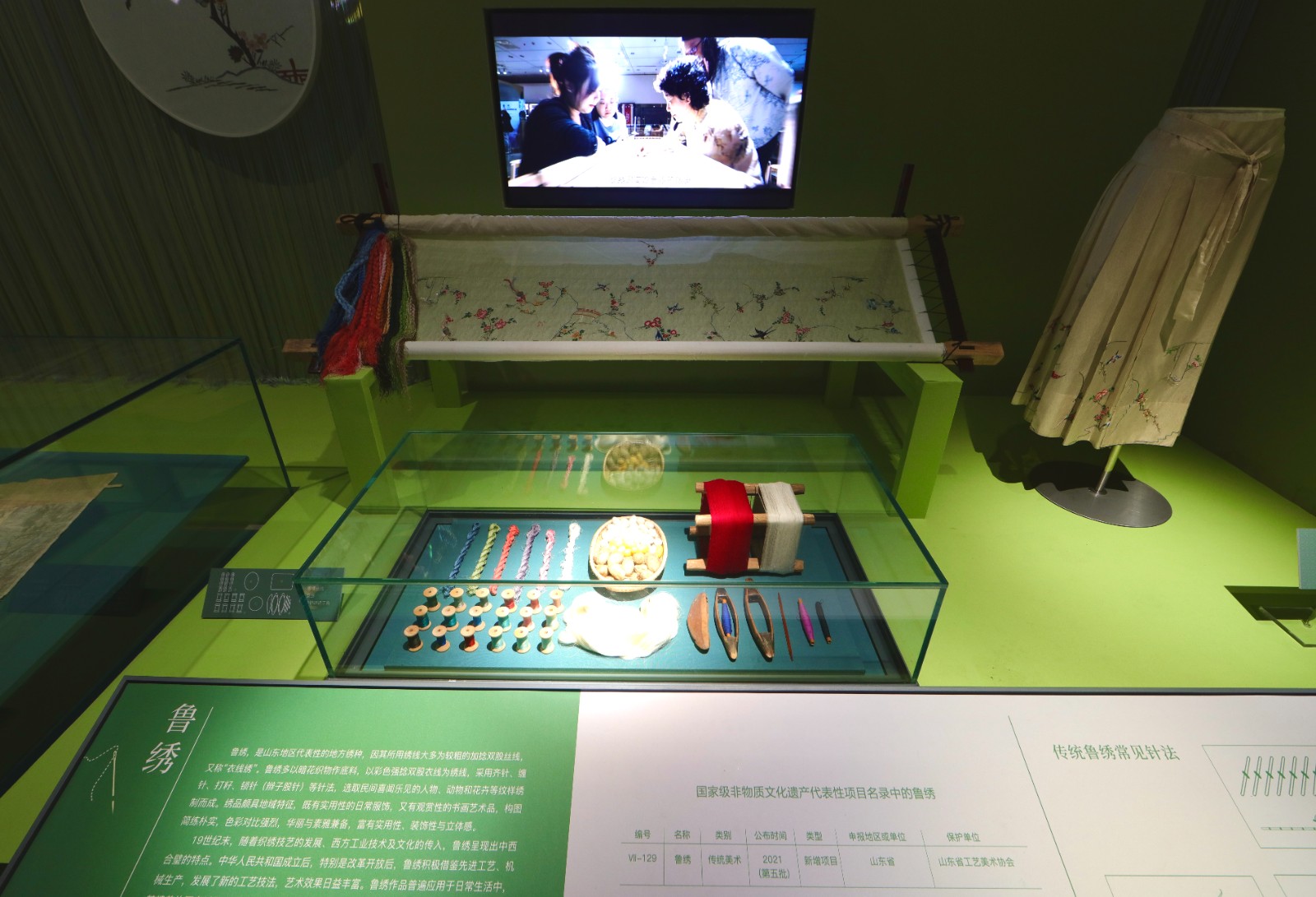 近日“锦绣齐鲁——鲁锦鲁绣文化展”在山东博物馆展出。展览通过“锦绣之源”“锦绣之流”“锦绣之传”三个部分,呈现山东地区织绣技艺的演变轨迹、艺术风貌,以织绣作品、互动展项、沉浸体验让观众感受到传统手工技艺在现代社会中的新生和活力。