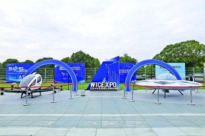 “互联网之光”博览会场馆外展示的低空飞行器。光明网记者崔益明摄/光明图片