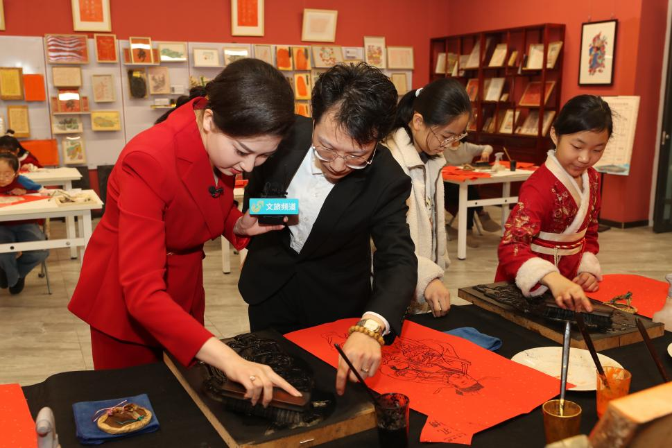 直播中,孔子博物馆还给大家奉上了丰富多彩的迎新春社教活动。旧时每逢过年,孔府的各道门上都要张贴春联和门神,烘托节日气氛,表达对新一年的美好祝愿。孔府门神包含着吉祥的寓意,见证了孔府的历史,也有着许多习俗和讲究。通过主持人的拓印体验,观众们可以学习门神拓印的制作过程,了解门神背后的传统故事。