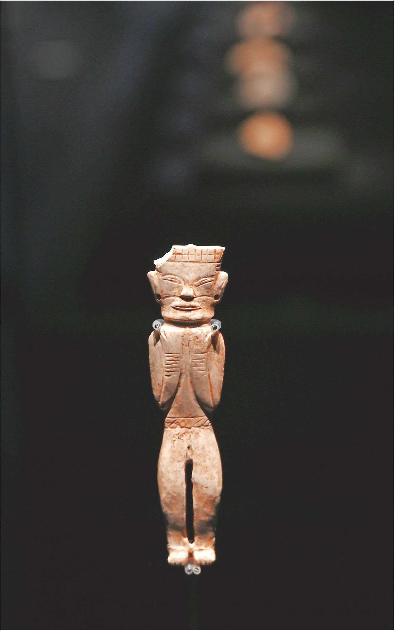 这是凌家滩遗址博物馆展出的玉立姿人(5月16日摄)。(□新华社发)