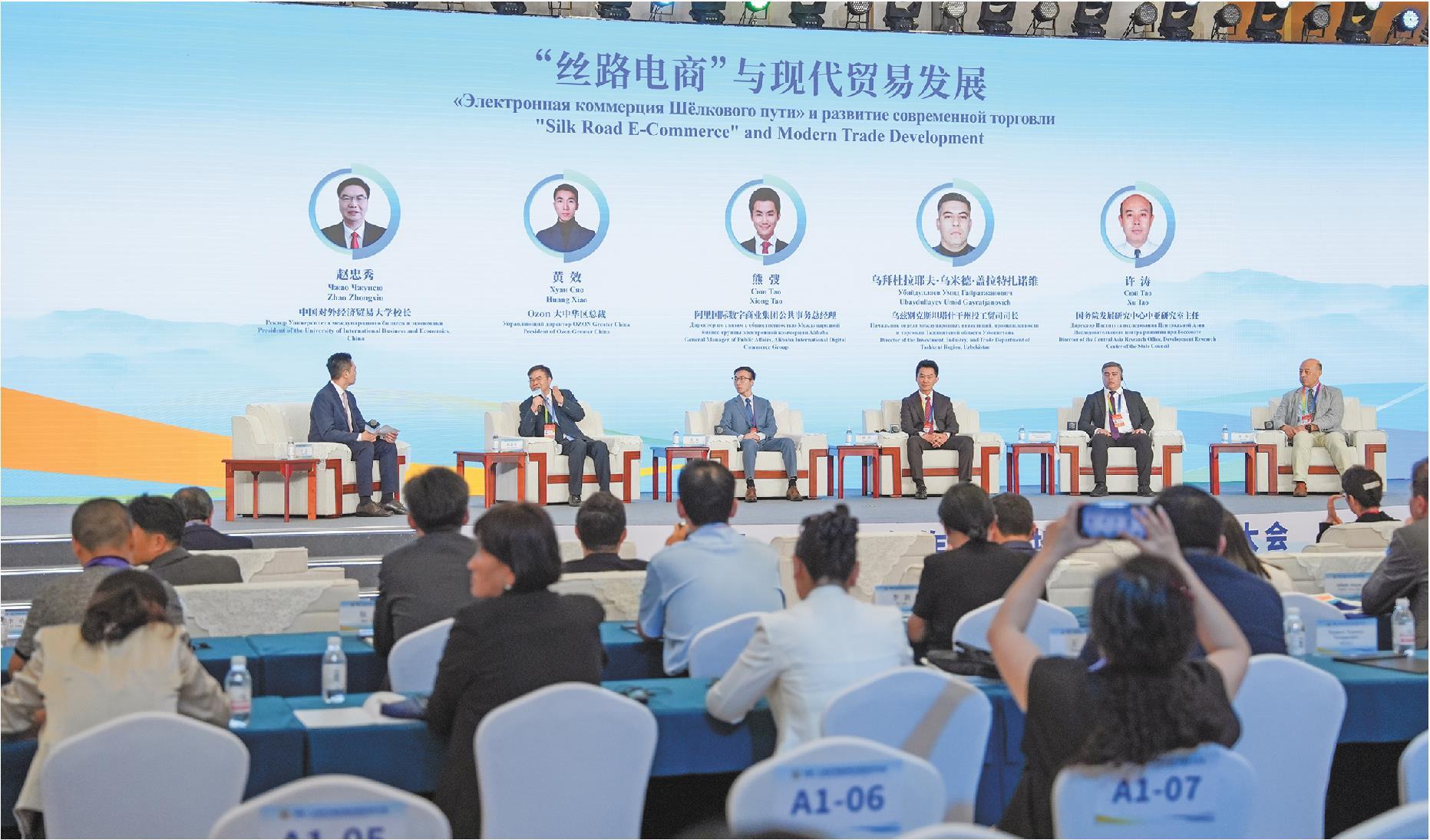 中国—上海合作组织地方经贸合作大会开幕式上举行以“‘丝路电商’与现代贸易发展”为主题的对话沙龙。