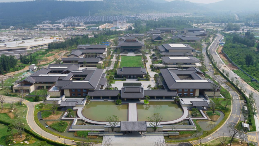 尼山中华优秀传统文化联合研究生院本部分为儒学文化交流中心(教学区)和生活中心(生活区)两个片区,包含研学教室、国学博物馆、图书馆、报告厅、住宿、餐饮等,满足学术研究与日常保障的双重需求。每一处空间都巧妙地将文化内涵与实用功能融为一体,浑然天成。