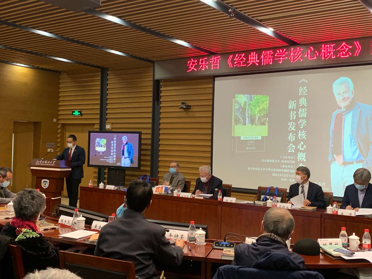 12月11日,世界著名中西比较哲学家、国际著名汉学大师、北京大学人文讲席教授、国际儒学联合会副会长、山东省儒学大家、2020年中国政府友谊奖获得者安乐哲先生《经典儒学核心概念》新书发布会在北京外国语大学举行。新书发布会由北京外国语大学和商务印书馆共同主办、北京外国语大学中华文化国际传播研究院承办。发布会以线上线下结合形式开展,京内的嘉宾线下参会,京外的嘉宾线上视频参会。