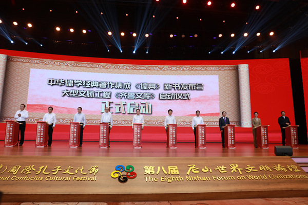 9月27日下午,由中共山东省委宣传部主办的中华儒学经典著作集成《儒典》新书发布会、大型文脉工程《齐鲁文库》启动仪式在第八届尼山世界文明论坛期间隆重举行。