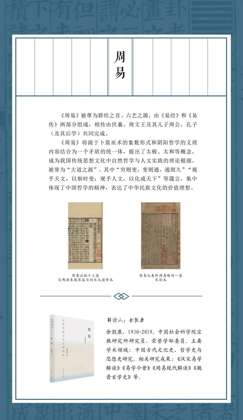 由此,经过作者平实质朴的解读,看似深奥艰涩的经典变得通俗易懂。点评部分不仅深刻地揭示其中的微言大义,而且结合《周易》的思想内涵,从当代的社会、人事、思维方式等等方面进一步探讨哲学原理、明确价值取向、规范道德准则,将中华优秀传统文化与社会主义核心价值观深度契合,对于我们当今和谐社会的构建具有启发意义。可见《百部经典》以阐释传统文化中的精华来提高人们的品德、修养和智慧,让读者读得懂、读得进去,从而领略“闲坐小窗读《周易》,不知春去几多时”的传统意趣。