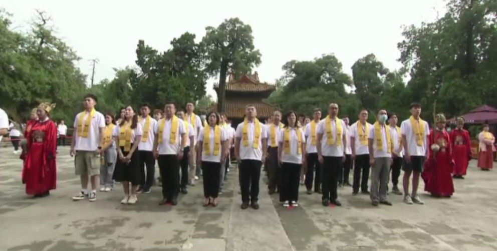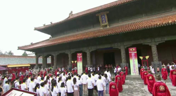 惟公元二O二O年八月八日,岁次庚子,时逢先师2571年诞辰到来之际,海外学子回归报国,咸集先圣故里,克诚克敬,载歌载舞,谨以鲜花雅乐之礼,恭祭至圣先师孔子。辞曰: