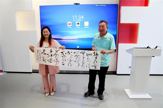 活动中,山东大学档案馆原馆长、山东大学书画研究会副会长兼秘书长刘培平先生向山东省儒学发展促进会捐赠墨宝两幅,宋海燕副会长接受捐赠。