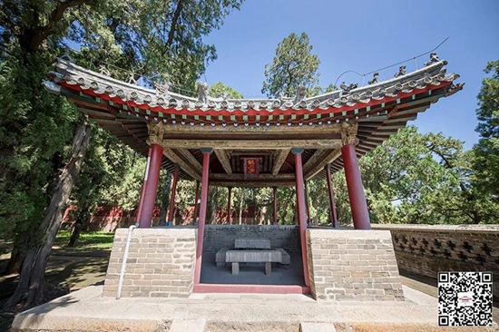 由坤灵洞拾级西上便是“观川亭”,始建于金明昌五年(1194年),今存为清代建筑。亭是根据《论语·子罕》篇记:“子在川上曰:‘逝者如斯夫,不舍昼夜’”而命名。相传为孔子临川眺望,见五川汇流(五川:智源溪、夫子河、张马河、颜母河、田黄河)、奔腾不息,叹时光变迁、“通昼夜之道”,明白了《易》所谓“终日干干,与时偕进”的道理,而能够尽达《易》的大用了(顾炎武:《日知录》)。一声叹息、余音千古。