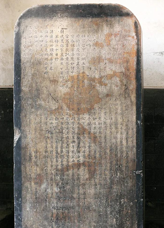 《对话碑》虽历时六百多年,至今却保存完好。该碑文分上下两部分,上部分是洪武元年(1368)朱元璋与孔克坚的对话,下一部分是洪武六年(1373)朱元璋与孔希学的对话,所以称之为《朱元璋与孔克坚、孔希学的对话碑》。因现立于曲阜孔府二门内东侧南首,又称《孔府门里对话碑》,亦简称《对话碑》。此碑与一些御制碑相比,形制虽较为逊色,但其史料价值并不比一般的御制碑低,且一直被孔氏家族和相关学者所重视。由于所记载的是明太祖与衍圣公的对话,换句话说,也就是明初的政权代表与儒家思想代表的“对话”,可谓是明初政治与文化的首次交锋和碰撞,其文献和研究价值甚至更大。可是,朱元璋与孔希学对话并不顺利,且有一段曲折的故事。