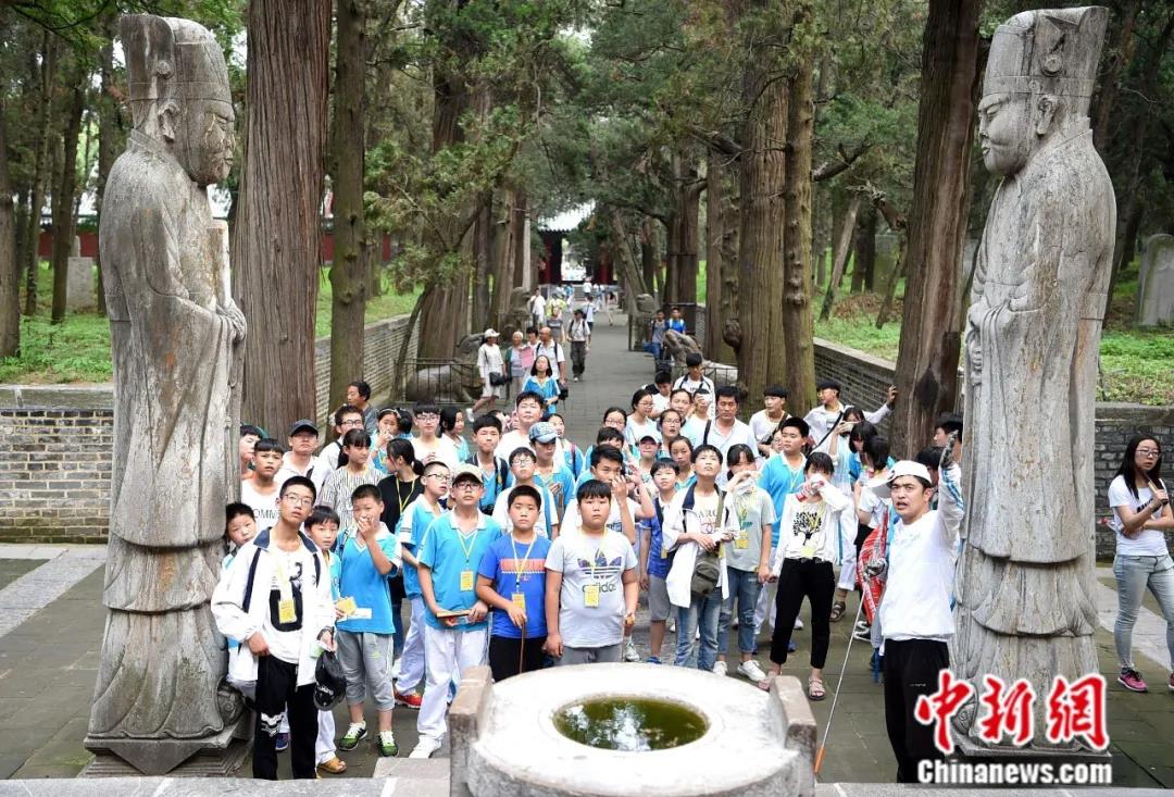 2016年7月,山东省济宁市曲阜“三孔(孔庙、孔府、孔林)”景区吸引参观者。中新社发 刘勤利 摄
