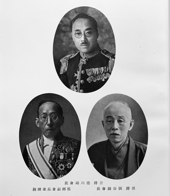 斯文会总裁伏见宫博恭王(1875-1946,皇族要员、海军元帅,曾任海军军令部长)、会长德川家达(1863-1940,德川将军家第16代宗主,曾任贵族院议长)。