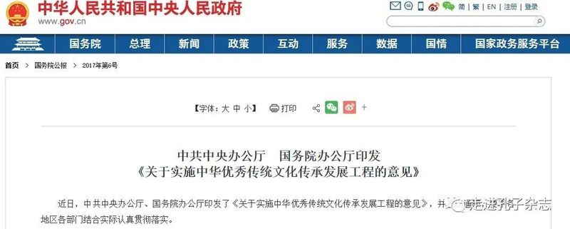 中共中央办公厅和国务院办公厅联合发布的《关于实施中华优秀传统文化传承发展工程的意见》