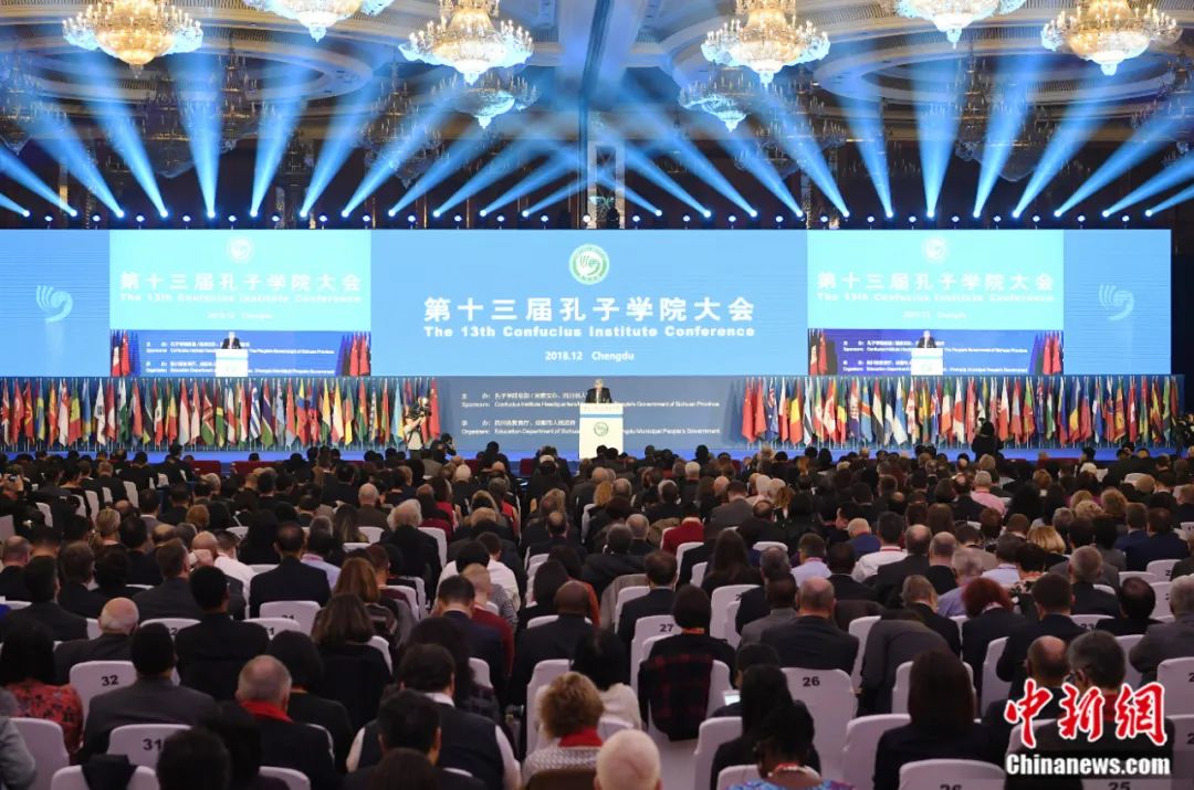 2018年12月4日,第十三届孔子学院大会在成都开幕。来自150多个国家和地区的大学校长、孔子学院代表近1500人参加大会。安源 摄