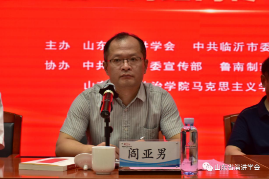 阎亚男代表山东省社会科学界联合会向第二届“两红两传”学术研讨会的召开表示热烈祝贺。他指出,省社科联把山东省演讲学会主导的“两红两传”学术研讨会列为2020年度社科类社会组织学术月系列活动之一,对挖掘山东红色资源、传播革命文化、传承红色基因的学术研究表示支持。希望与会同志切实提高政治站位,以习近平新时代中国特色社会主义思想为指导,认真学习贯彻习近平总书记在临沂考察时的重要讲话精神,在“传播红色文化,传承红色基因”方面积极发挥作用,争取把“两红两传”系列活动打造成为山东省社科联和山东省演讲学会的精品活动品牌。