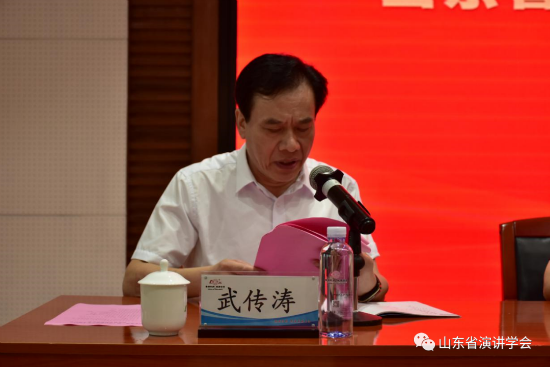 这次学术研讨会的主题是,弘扬沂蒙精神,决胜全面小康,走好新时代的长征路。22日上午的专家报告和下午的大会交流都围绕着这一主题展开。山东省演讲学会会长武传涛教授主持了22日上午的专家报告会,四位专家作了主题报告。
