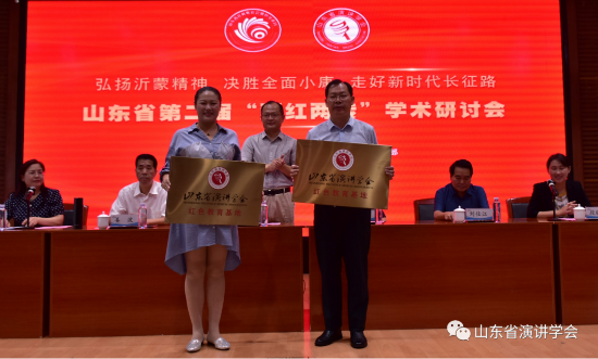开幕式上,山东省社科联和山东省演讲学会,向大青山胜利突围纪念馆和赵志全同志纪念馆授“山东省演讲学会红色教育基地”牌匾。
