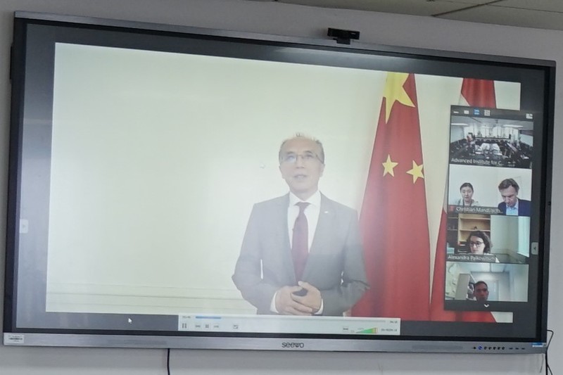 奥地利外交部公使亚历山大·里格先生在致辞中表示交流和对话在疫情期间也是非常必要的。对话能够架起桥梁、促进相互理解,只有通过对话,才能消除偏见、扩展视野。交流不是为了判断对错,而是一种人和人之间思想的交流与丰富。在过去五十年间,奥地利和中国的专家们已经对许多现实性和长远性的问题进行了对话交流。今年是中奥两国建交五十周年,这为回顾两国在过去对话方面取得的发展提供了契机。今后,公使先生表示,相信双方在哲学及发展理念方面的对话还会进一步深入。