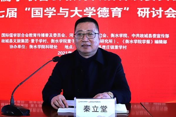 最后,中共故城县委常委、宣传部长秦立堂致闭幕辞。秦立堂指出,经过各位专家学者的共同努力,顺利完成了各项议程,大家围绕“国学与大学德育”相关主题,发表了具有真知灼见的学术见解,既有对国学与大学德育的理论思考,也有典型案例的分析,又有董仲舒人文、教化、法律、大一统等思想与大学德育相结合的深入探讨,体现了在新时代的背影下,国学和大学德育命题所面临的新的使命担当、创新思维及其现代价值广泛探究和深切关注,会议紧凑热烈,学术氛围浓厚。