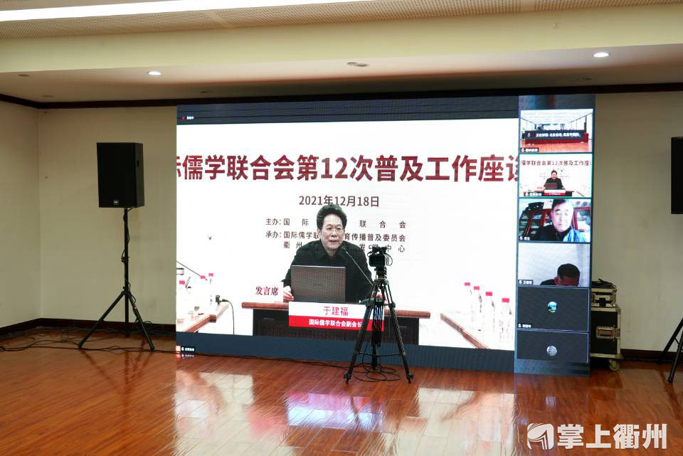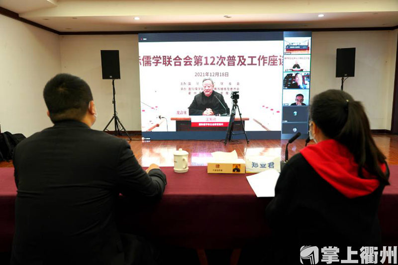 12月18日,国际儒学联合会第12次普及工作座谈会暨优秀传统文化进校园研讨会如期而至。受新冠肺炎疫情影响,会议采用线上线下相结合的形式举行,在衢州、北京设分会场,其中,衢州会场设在衢州市新桥街79号中国儒学馆。