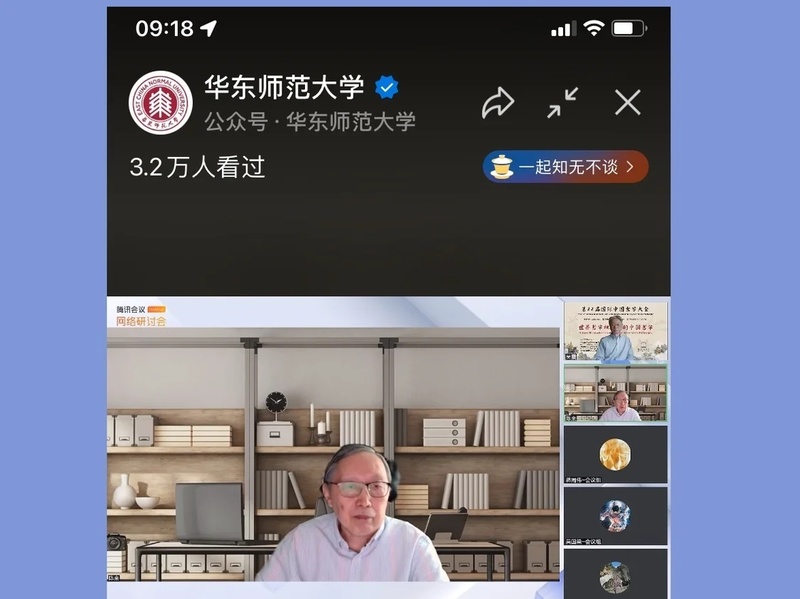 记者注意到,开幕式尽管在腾讯会议室的网络会议室举办,不过,有近60位学者被设为嘉宾身份,他们拥有音频、视频权,技术带来仪式感,线上大合影也蔚为壮观;其余有400余位学者和听友有序地在听友通道内;而同步直播的华东师大微信公众号、视频号和B站华东师大号,均有几万听友直接暖屏,上午的全体大会与下午的特邀专场的两场直播分别达到了9万和10.7万。。在这一天的大会发言、特邀会议、平行会议中,在嘉宾通道里,记者几乎见到了所有平时想见而迫于时空限制无法见到的海内外业内大牌学者。见屏如晤,成了疫情期间人际交流的情感新传递模式。“你好吗?”视频里,学者们看到老友都不约而同发出问候,还赞许着对方的精气神。或者见到未显示视频的熟悉的名字,也有“最远也是最近”的距离亲切感。