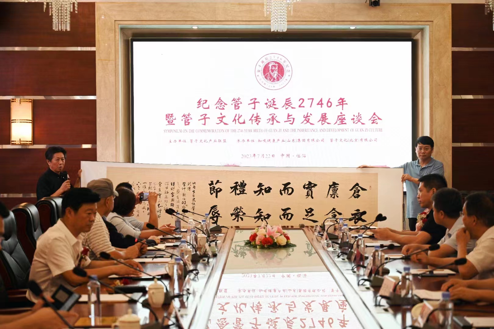七月流火,万物峥嵘。在这火热的时节,由管子文化产业联盟、山东省淄博市临淄区人民政府主办,管子文化(北京)有限公司、知歧健康产业(山东)集团有限公司承办的“纪念管子诞辰2746年暨管子文化传承与发展座谈会”在山东省淄博市临淄区召开。著名经济学家、管子文化产业联盟主席、中国民营经济研究副会长、如是金融研究院院长管清友,管子文化学者、管子文化产业联盟秘书长、管子文化(北京)有限公司董事长管捷,管子文化产业联盟常务副主席、山东健康长寿文化促进会会长、知岐健康产业(山东)集团有限公司董事长管庆磊,管子文化产业联盟副主席管敦家、管红、管玉军 、管延博、管军、管锡康等及来自全国各地的管子文化学者、企业家代表欢聚一堂。