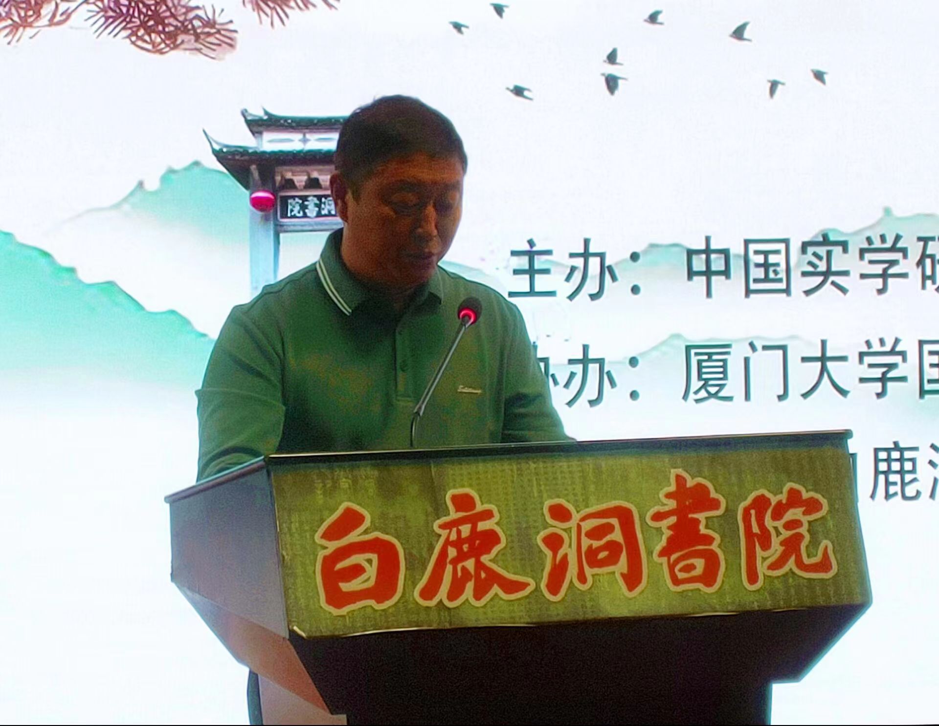 受九江市委常委、庐山市委书记邵九思、庐山市市长王斌委托,庐山管理局党委委员、副局长张国宏代表庐山市委市政府致辞。他指出,这次学术研讨会响应习近平总书记在江西九江考察时提出“深入发掘长江文化的时代价值,推出更多体现新时代长江文化的文艺精品”的重要讲话精神,通过对历史上曾经在白鹿洞书院讲学著述的朱熹、陆九渊、王守仁等思想家进行探讨,再现“天下书院之首”的荣光。