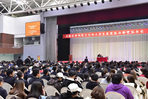 11月7日,山东科技大学由教师和学生代表一行82人,参加了青岛西海岸新区工委高校工委和青岛黄海学院共同组织的“中国优秀传统文化和大学生思想政治教育报告会”,报告会上,国际儒学联合会副理事长、中华孔子学会副会长、中国孔子研究院院长杨朝明教授做了“让孔子照亮人心”的主题报告。新区工委部分领导和驻区高校师生近3000人聆听了报告会,报告会深受师生们的欢迎。