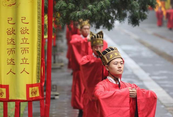 绵延2000多年的祭孔活动是中国历史上独特的文化现象,蕴含着重要的文化信息和时代价值。整个祭祀大典分为开城仪式、开庙仪式、启户仪式、公祭大典四项议程,按照“乐、颂、舞”三个篇章,既保留了古代释奠礼的部分内容,又融入当下精神的创新部分。百名学子首次参加祭孔大典,在心灵上给予了极大震撼,感受到了千年儒风浸染下的礼乐文明,增强了赓续中华文脉的使命感和认同感。