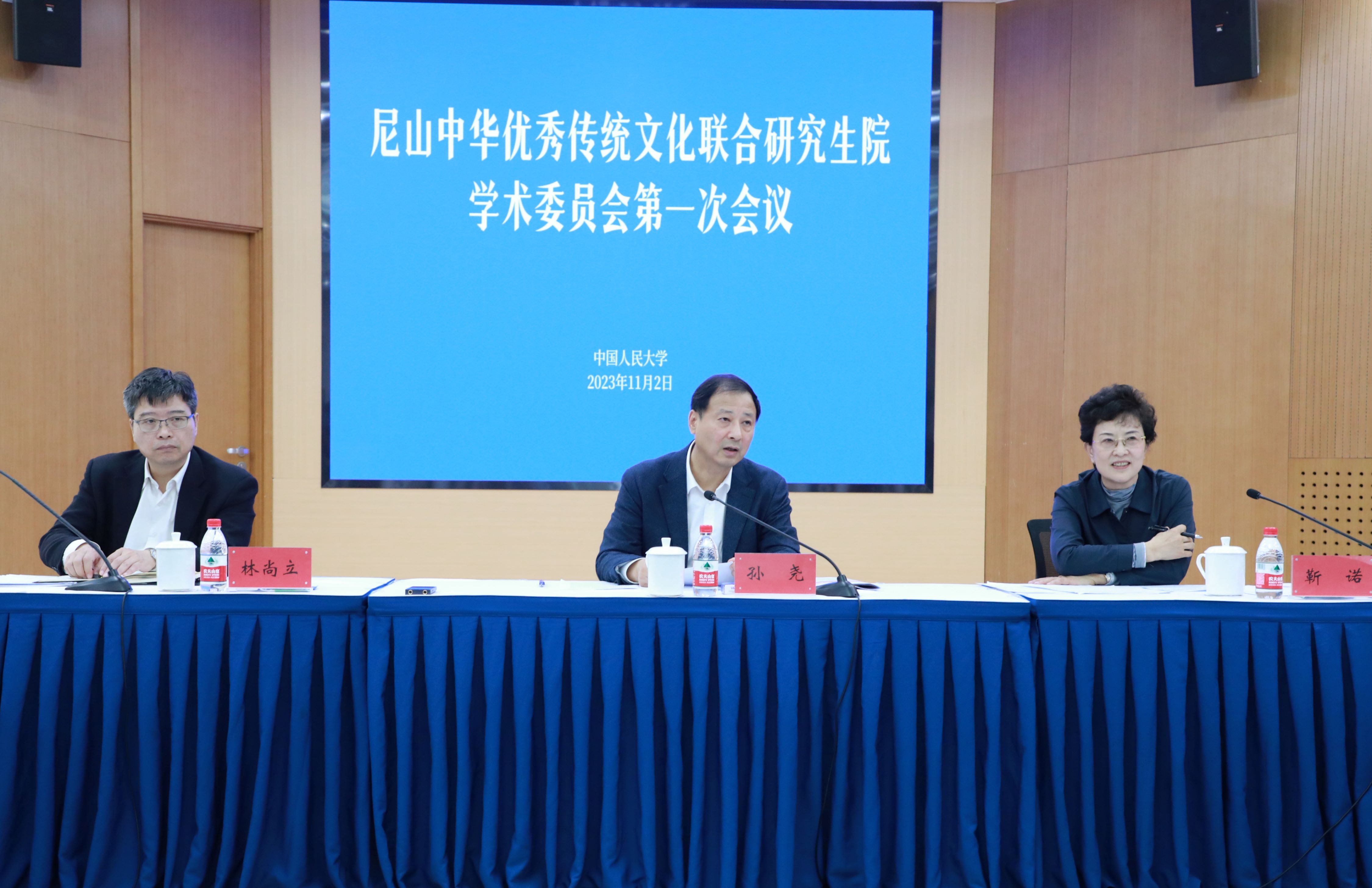 为深入贯彻党的二十大精神,贯彻落实习近平总书记在文化传承发展座谈会上的重要讲话精神,进一步完善联合研究生院工作机制,扎实推进联合研究生院各项工作顺利开展,11月2日,尼山中华优秀传统文化联合研究生院学术委员会第一次会议在中国人民大学召开。教育部党组成员、副部长孙尧;尼山世界儒学中心理事会理事长、联合研究生院院长靳诺;中国人民大学校长、党委副书记,尼山世界儒学中心理事会常务副理事长、联合研究生院学术委员会主任林尚立出席会议并讲话。