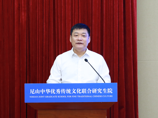 8月28日,尼山中华优秀传统文化联合研究生院2025级专项研究生集中研修活动总结会议在山东邹城举行。孔子研究院党委副书记、院长孔德立致辞。