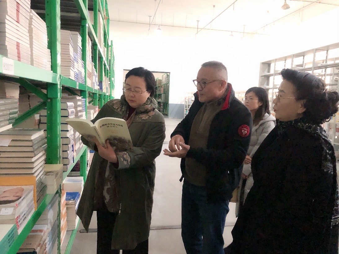 邹进对公司的发展历程和主要业务情况做了介绍,并陪同周静及随访人员实地考察了图书配送基地。