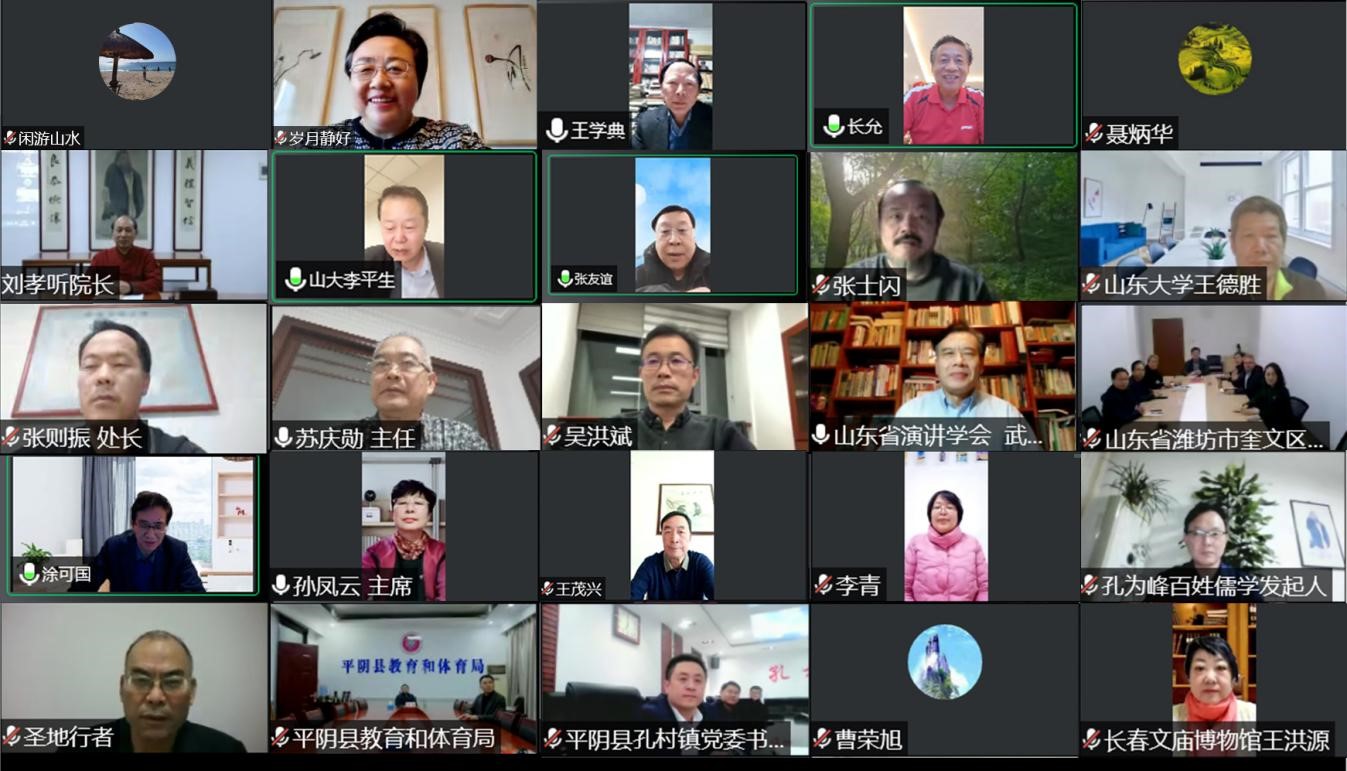 湖南省社会主义学院、湖南省中华文化学院原副院长,孔子学堂推进委员会副主任刘孝听,吉林省长春市文庙博物馆馆长、孔子学堂推进委员会副主任王洪源,山东省演讲学会会长、党支部书记武传涛,潍坊市奎文区教育工委常务副书记、教体局党组书记、局长王玉兴,山东省政协常委、菏泽市政协原副主席、社会主义学院原院长孙凤云,山东省寿光市关工委主任、市政协原主席王茂兴,济南市平阴县孔村镇党委书记门洪斌、教体局研学游专班主任张岳等孔子学堂负责人、传统文化工作者代表,介绍了各自的经验做法、取得的可喜成绩,为建设尼山传播协同创新中心,开展孔子学堂新时代文明实践工作,提出了宝贵意见和建议。