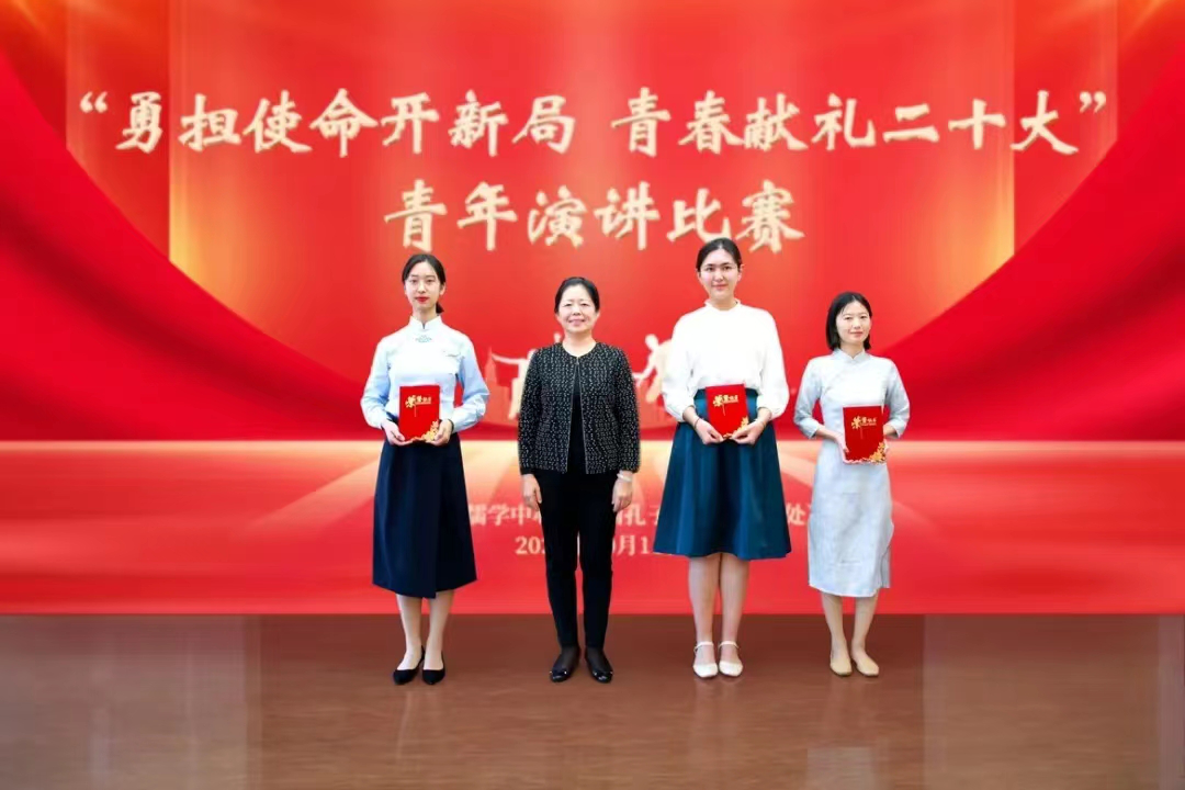 国承彦同志为获得“勇担使命开新局 青春献礼二十大”青年演讲比赛一等奖的选手颁发证书