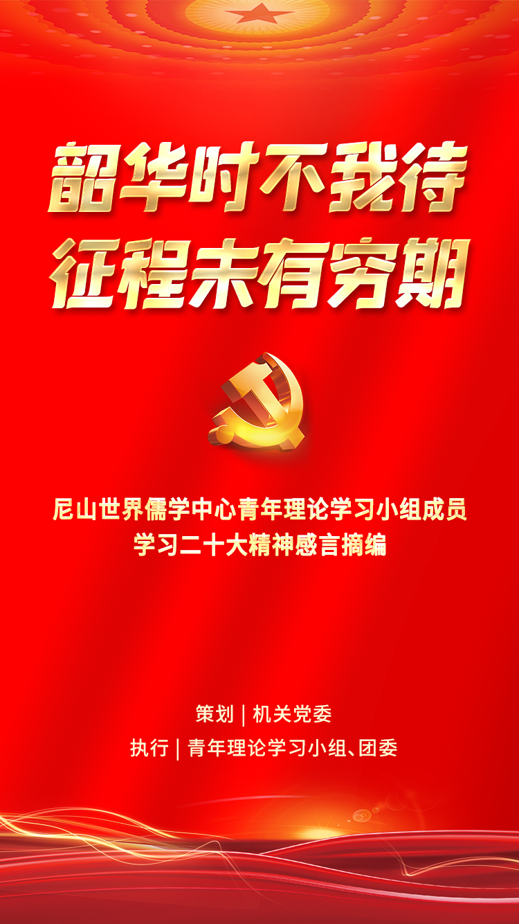 作为新时代的青年和儒学中心的工作人员,报告中提到近三十次“文化”一词更是让我强烈感受到文化自信的重要性。入职以来,我参与了筹办尼山世界文明论坛等工作,体会到儒家文化在陶冶个人情操和培养家国情怀方面发挥了重要的社会功能。更多人对儒家文化的转变,可能意味着亿万人对中华文化的更坚定的自信和更强烈的认同。我们要结合人民日益增长的物质文化和精神需求,将文化事业体现在一件件有内涵又实用的日常工作上,用我们年轻人的双手和天马行空的创意想法,从文化战线的中国式现代化,全面推进中华民族伟大复兴的大主题。