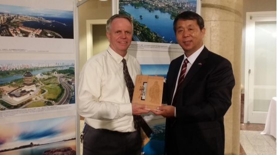Western Sierra Collegiate Academy副校长Chip Kling在发言中介绍了他所在的学校与杭州第四中学开展文化交流的具体情况,他很荣幸的介绍到“我们去年和今年都接待了二十几位杭州第四中学的学生,这些学生与我们的学生一起上课、交流。我们有很多机会跟中国合作,所以我的学生可以有机会可以去参加青年大使团,让我们的学生可以有机会学中文,与大家进行更多的交流。”