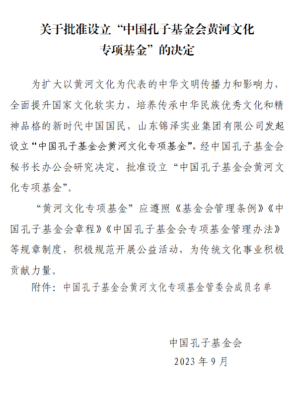 关于批准设立“中国孔子基金会黄河文化专项基金”的决定