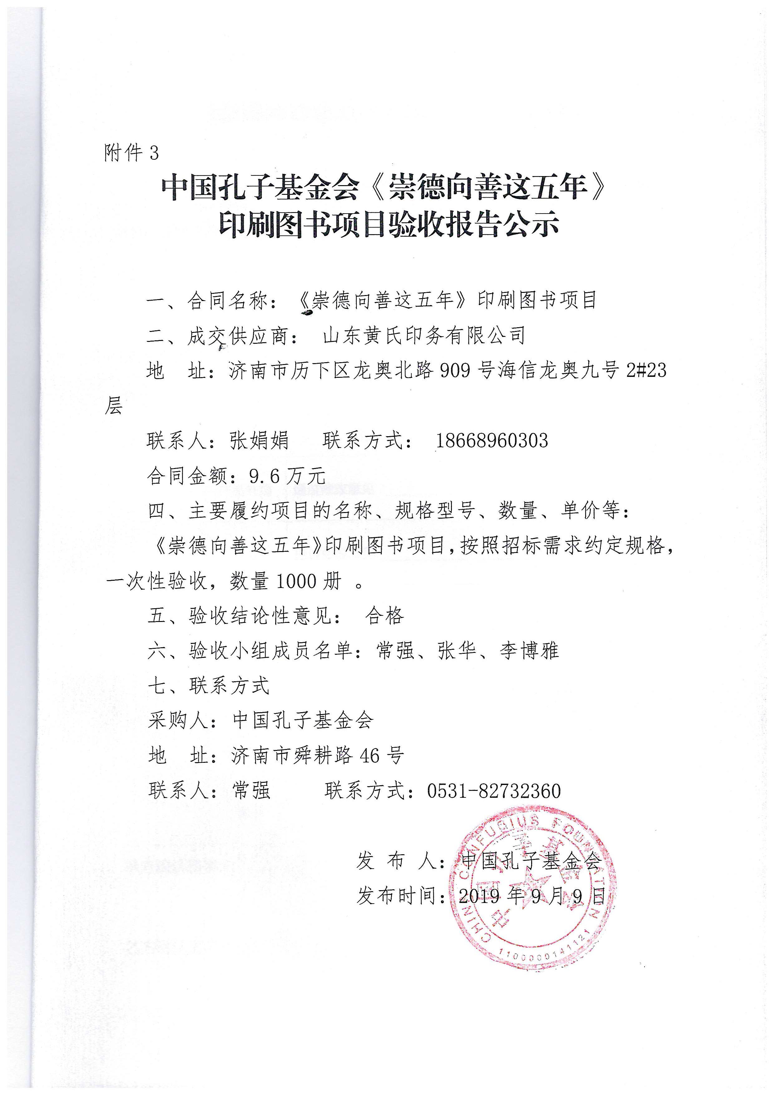 中国孔子基金会《崇德向善这五年》印刷图书项目验收报告公示