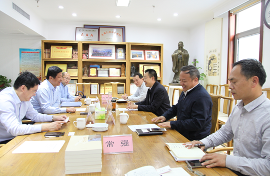 刘廷善同志向庆云客人介绍了中国孔子基金会的有关情况,特别就“中华经典吟诵大会”和“孔子学堂”两个公益品牌的发展概况作出了说明。