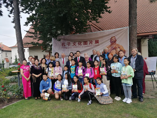 捷克是代表团本次出访的重头戏,“孔子文化世界行·走进捷克——孔子文化图片展”在捷克著名的文化传媒公司Foibos举行。展览现场动静结合,室内播放着“永远的孔子”专题片,室外绿茵茵的草坪上摆满了精致的图片,图片分为“孔子的主要思想及生平事迹、孔子思想对后世的影响、孔子故里展新姿”三个板块,集中反映了孔子不平凡的成长历程、儒家思想的博大精深及其对中华文明和世界文明的深远影响,集中体现了“孔子故里”--中国山东的深厚文化底蕴和改革开放以来展现的新面貌、取得的新成就。中国驻捷克使馆文化参赞吴光、Foibos文化传媒公司总经理雅努达先生,斯洛伐克驻捷克联合会主席Viliam Pauliny先生,意大利友好联合会主席Ivan Remenec先生,捷克艺术玻璃协会主席Dalibor Sihaby先生,捷克各界华人华侨代表、华文学校师生共60余人参加图片展开幕式。刘爱军同志在致辞中指出,孔子是中国古代伟大的思想家、教育家,儒家的和合思想是世界各国友好交往的基础,“四海之内,皆兄弟也”,世界虽大,但总会有像兄弟般思想和感情相通的知心朋友。国与国的交往,归根结底是人与人的交往,是人心与人心的沟通,而人类共有的文化恰是我们交流沟通、建立友谊的最好的纽带。中捷两国虽然相距遥远,但一直以来,两国人民都有着非常深厚的友谊,捷克总统泽曼多次访问中国,出席了纪念中国人民抗日战争暨世界反法西斯战争胜利70周年阅兵活动,还参加了两届“一带一路”国际合作高峰论坛、中国国际进口博览会等活动。2016年3月,中国国家主席习近平访问捷克,同泽曼总统举行亲切会晤,双方共同发布了《中华人民共和国和捷克共和国关于建立战略伙伴关系的联合声明》,中捷关系展开了新的时代篇章。今年,正值中捷建交70周年,也是孔子诞辰2570周年,还是中国孔子基金会成立35周年。借此机会,中国孔子基金会代表团访问捷克,举办“孔子文化图片展”活动,与捷克各方友人一起就文化领域的交流合作展开更加深入的研讨,意义非同一般。中国驻捷克使馆文化参赞吴光同志在致辞中充分肯定了儒家思想在中华文化中的地位及对中国与世界各国交往的作用,感谢中国孔子基金会在中华人民共和国成立70周年之际带来的孔子文化图片展,希望通过活动促进两国的文化交流,使馆会大力支持这样的活动。