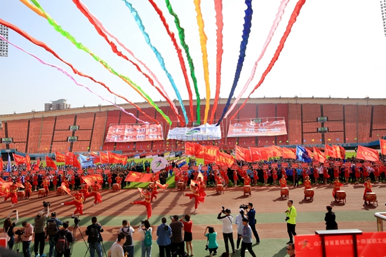 9月18日,山东省省直机关第十四届职工运动会在山东省体育中心开幕。省委省直机关共109个部门单位的8500余名干部职工出席开幕式。
