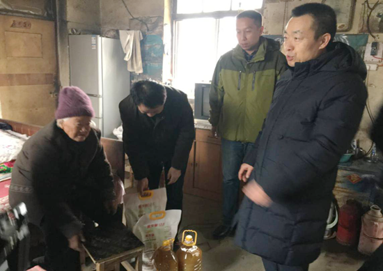 刘爱军同志一行走访慰问了东闫庙村两户贫困家庭、一户老党员家庭,代表中国孔子基金会秘书处党组把组织的关怀送给他们。每到一处,刘爱军同志都为他们送去了米面、食用油等生活必需品和新年祝福,询问他们的生活情况、身体情况,并不时叮嘱秘书处派驻东闫庙村“第一书记”袁春同志要多关心帮助贫困家庭和老党员,要把党的扶贫政策和富民政策落实到位。